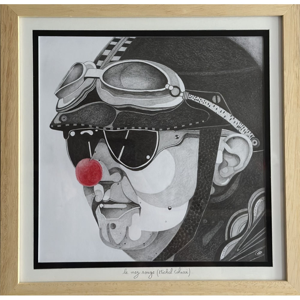 Graphite   Image : 24,8 cm x 24,8 cm   Avec cadre : 33 cm x 33 cm   Passe partout blanc cassé – liseré noir   Cadre et verre professionnel – cadre bois clair