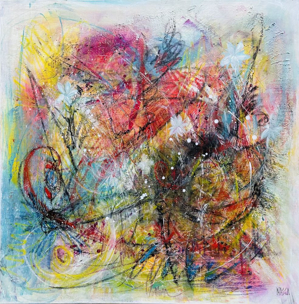 Acrylique, encre, pastel gras et sec sur toile châssis    80 x 80 cm