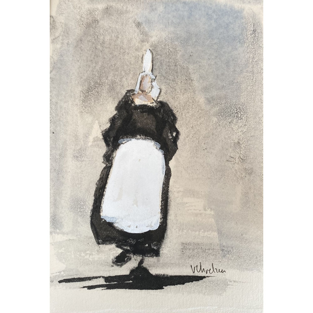 Encre et fusain sur papier Fabriano 300mg 13 x 18 cm avec cadre et passe partout