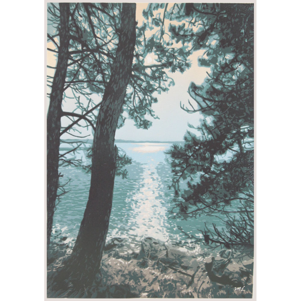 Linogravure à plaque perdue (6 couleurs)  n°5/16, Encre d’impression à base d’huile sur papier Hahnemuehle 300g   gravure 50 x 35 cm   Avec passe-partout  65 x 50 cm