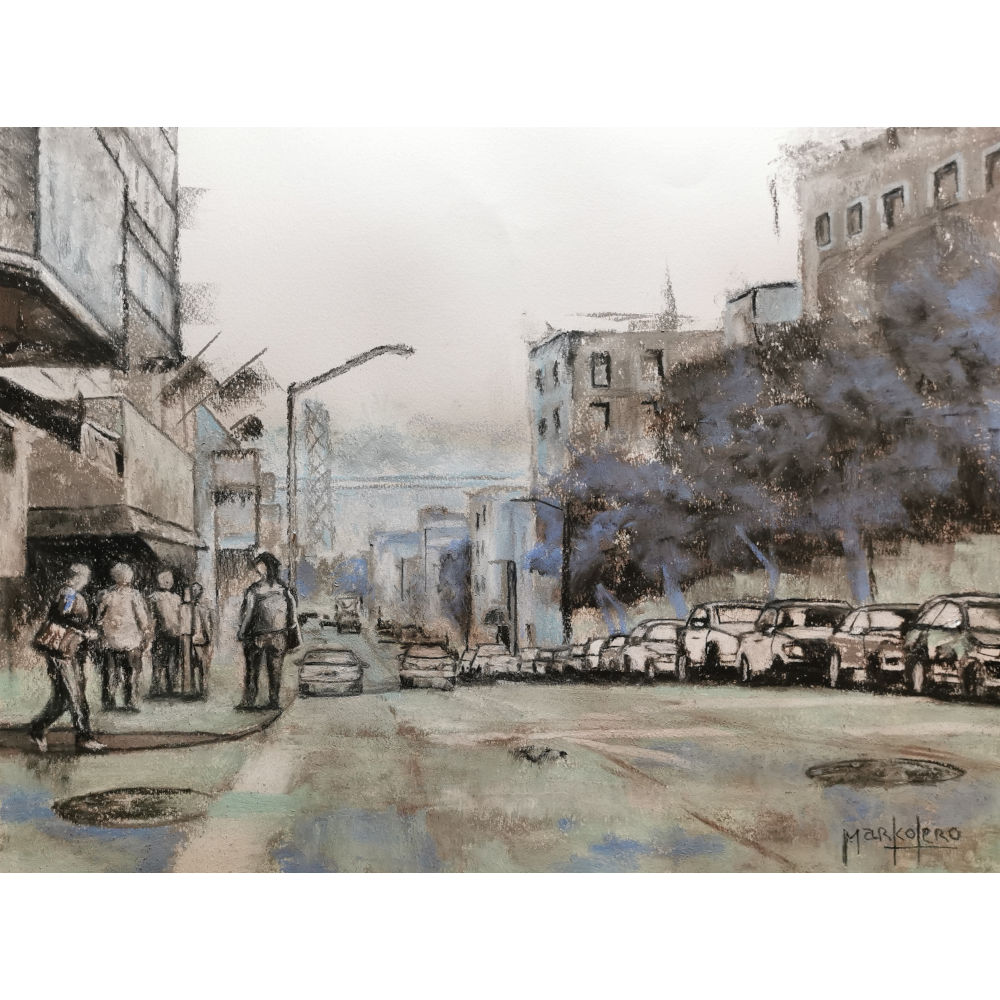 Pastel sec 30 x 40 cm encadré 40 x 50 cm passe partout blanc cadre couleur sable
