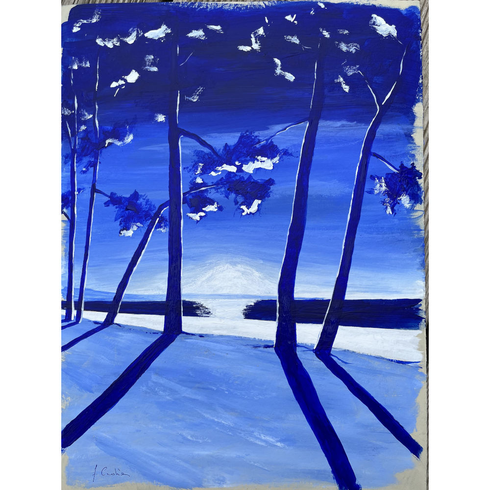 Acrylique sur carton  Cadre en bois naturel / vitre plexiglass.    40 x 30 cm