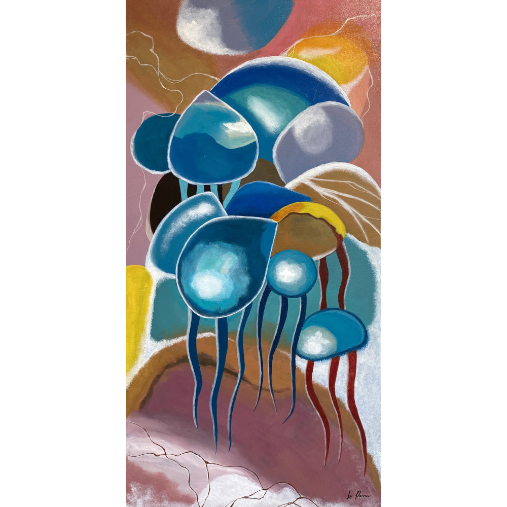 Acrylique sur châssis en bois entoilé en coton  50 x 100 cm  Epaisseur tranche 4 cm (peinte en noir)