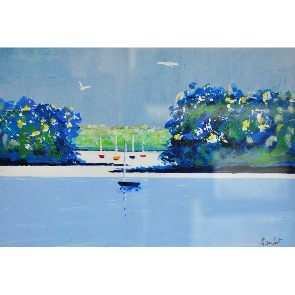 Acrylique sur papier  cadre bois laqué blanc  30 x 20 cm
