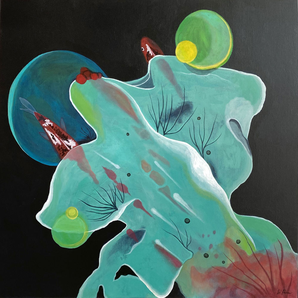 Acrylique sur châssis en bois entoilé en coton  100 x 100 cm  Epaisseur tranche 2 cm (peinte en noir)