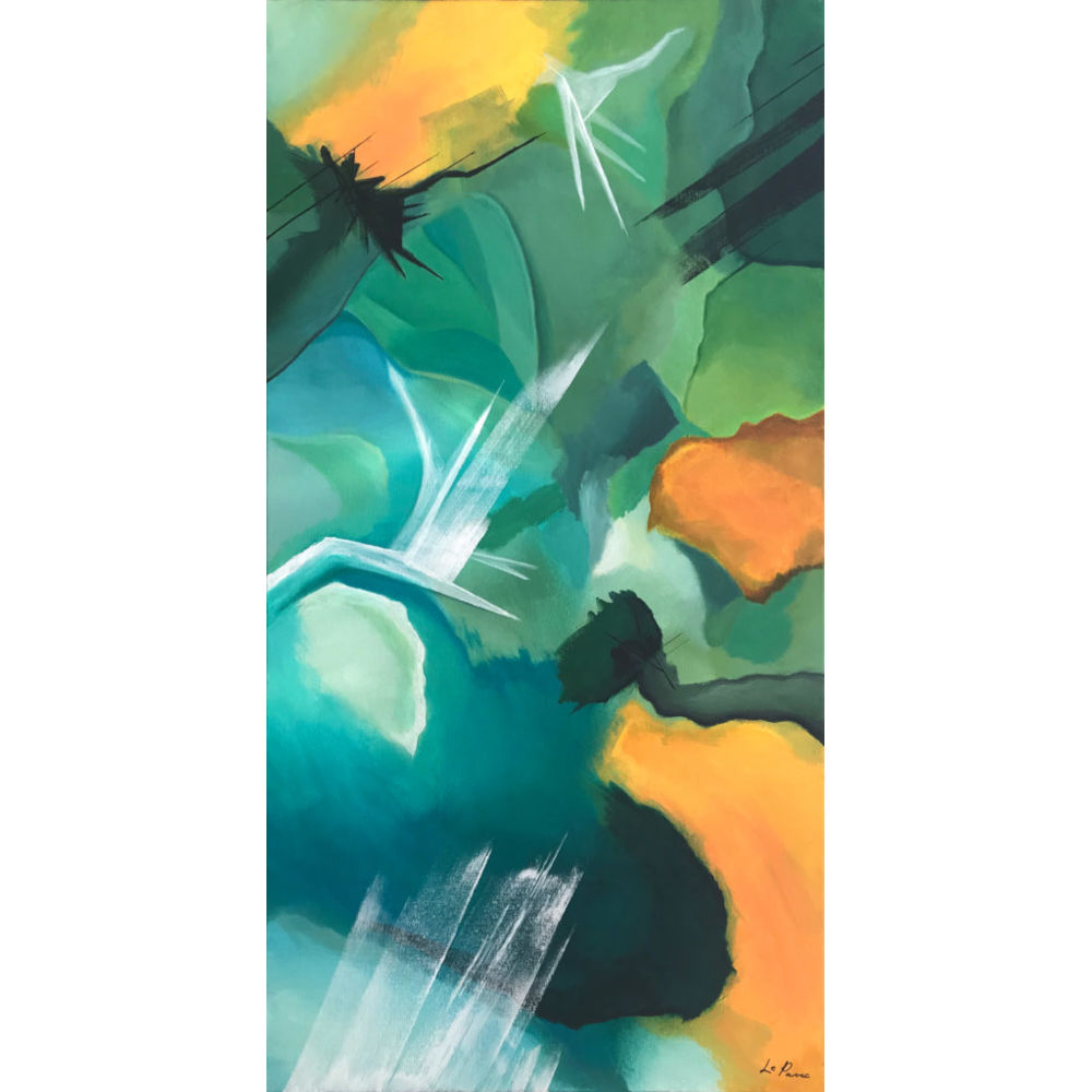Acrylique sur châssis en bois entoilé en coton  50 x 100 cm  Epaisseur tranche 4 cm (peinte en noir)