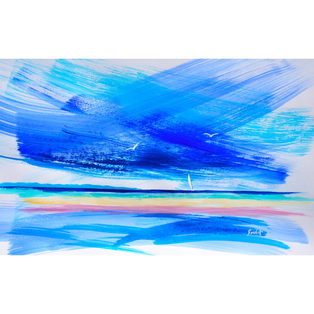 Aquarelle et acrylique sur papier  cadre bois laqué blanc  49 x 39 cm