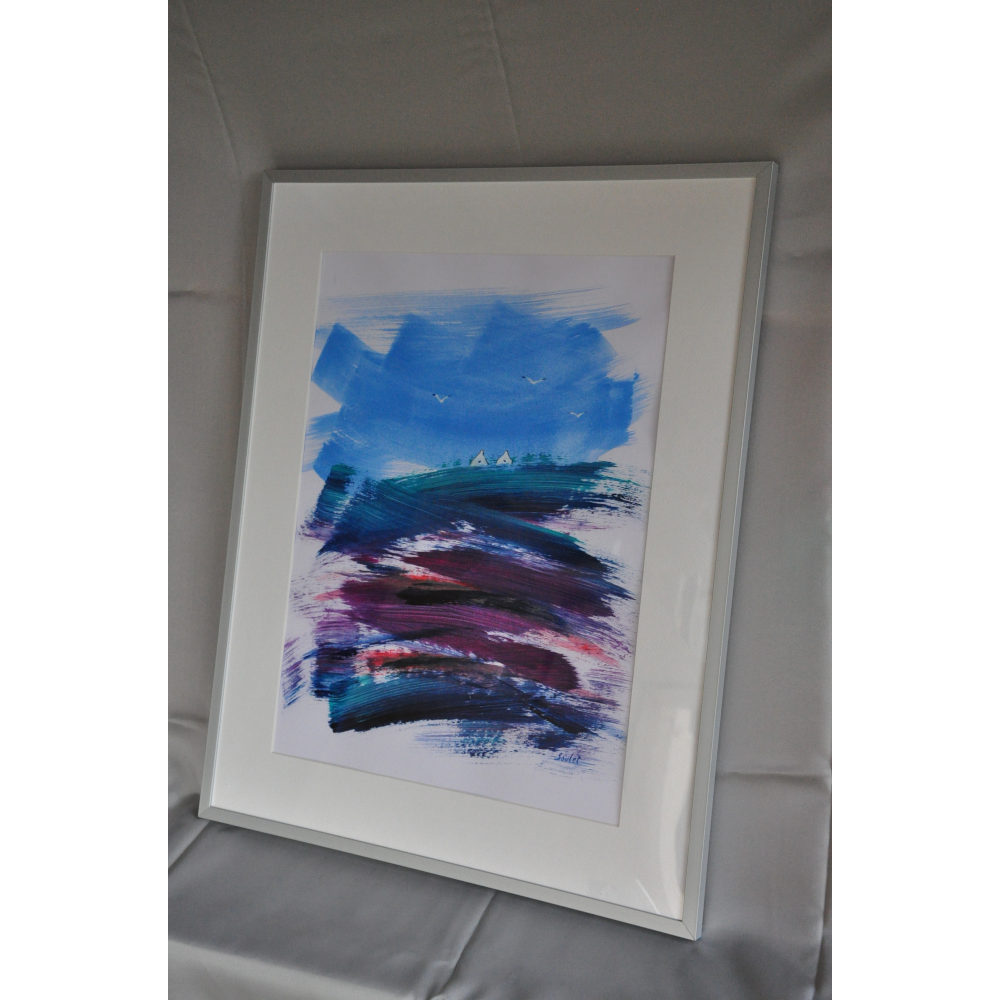 Aquarelle et acrylique sur papier  cadre bois laqué blanc  29 x 39 cm