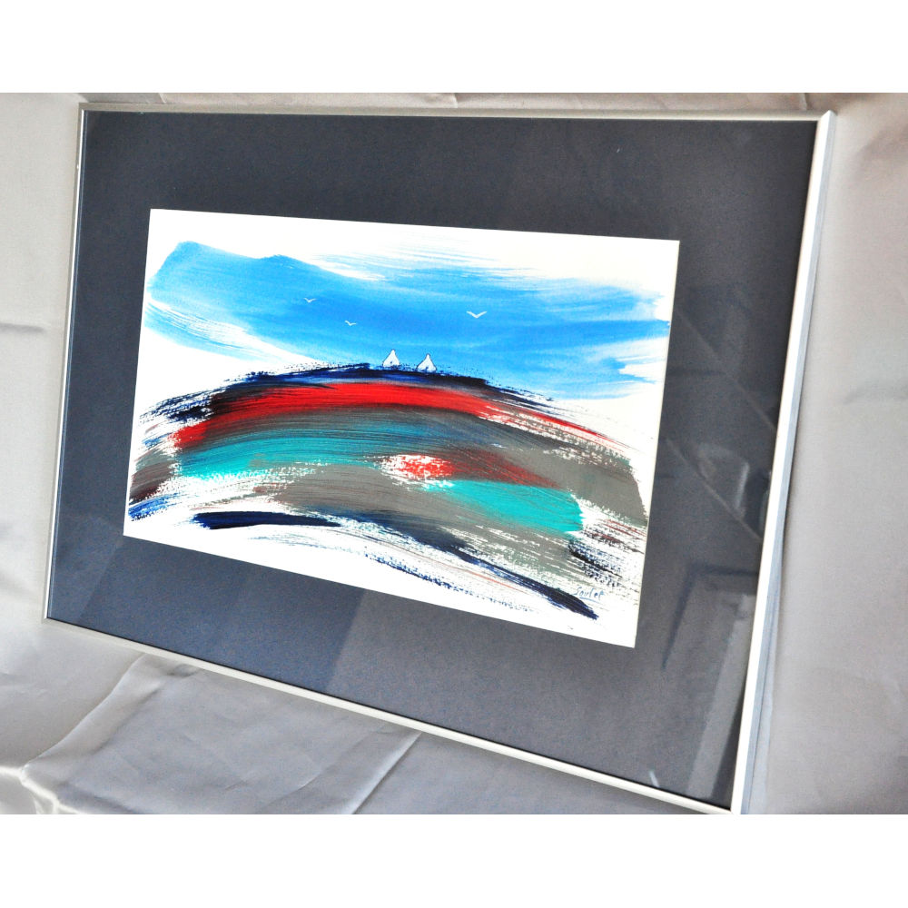 Aquarelle et acrylique sur papier  cadre alu Nielsen anodié  41 x 23 cm