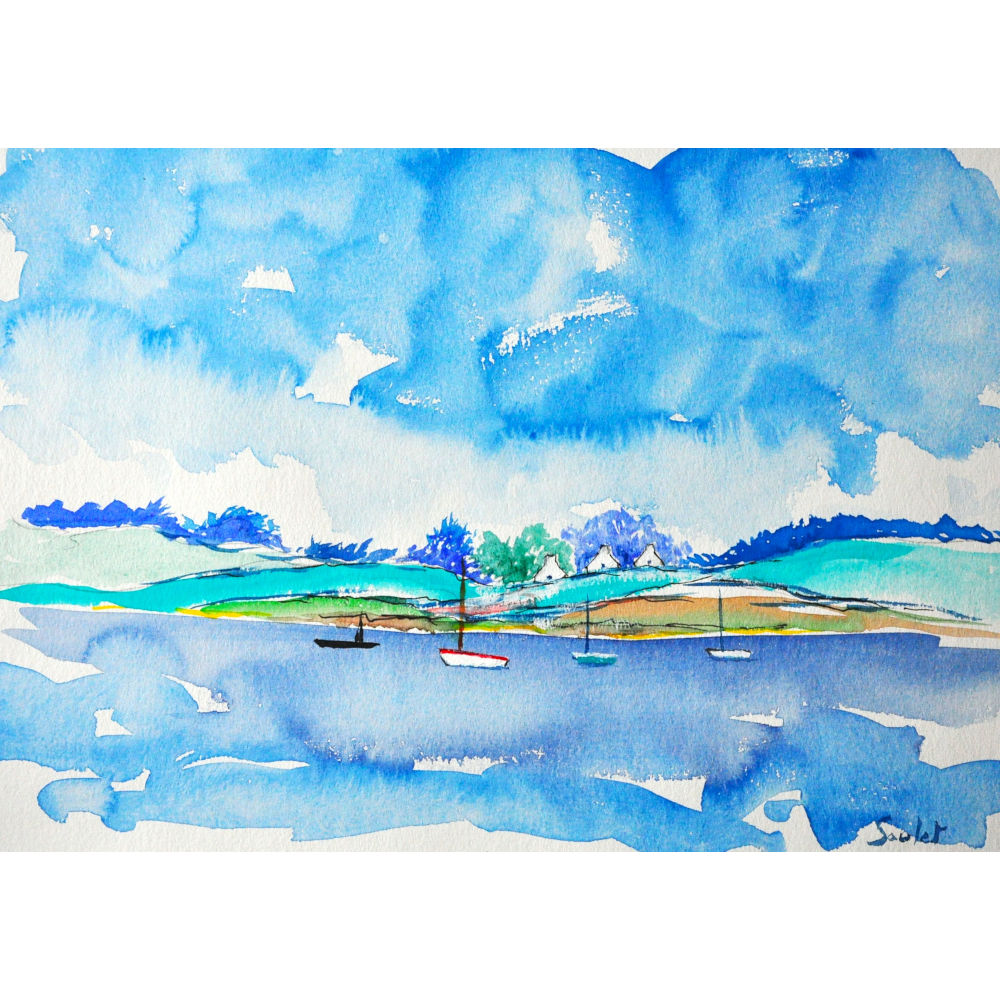 Aquarelle et acrylique sur papier  cadre bois laqué blanc  30 x 20 cm