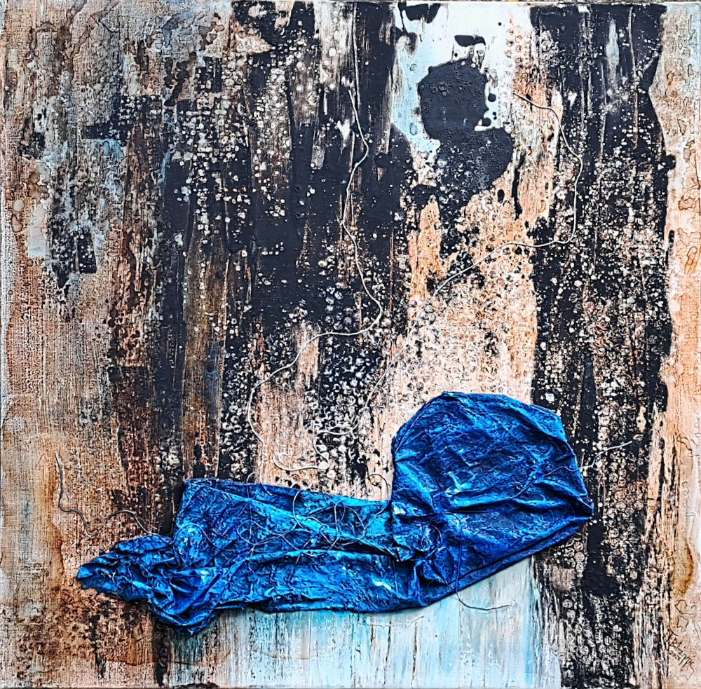 Acrylique, goudron et collage sur toile de lin  80 x 80 cm