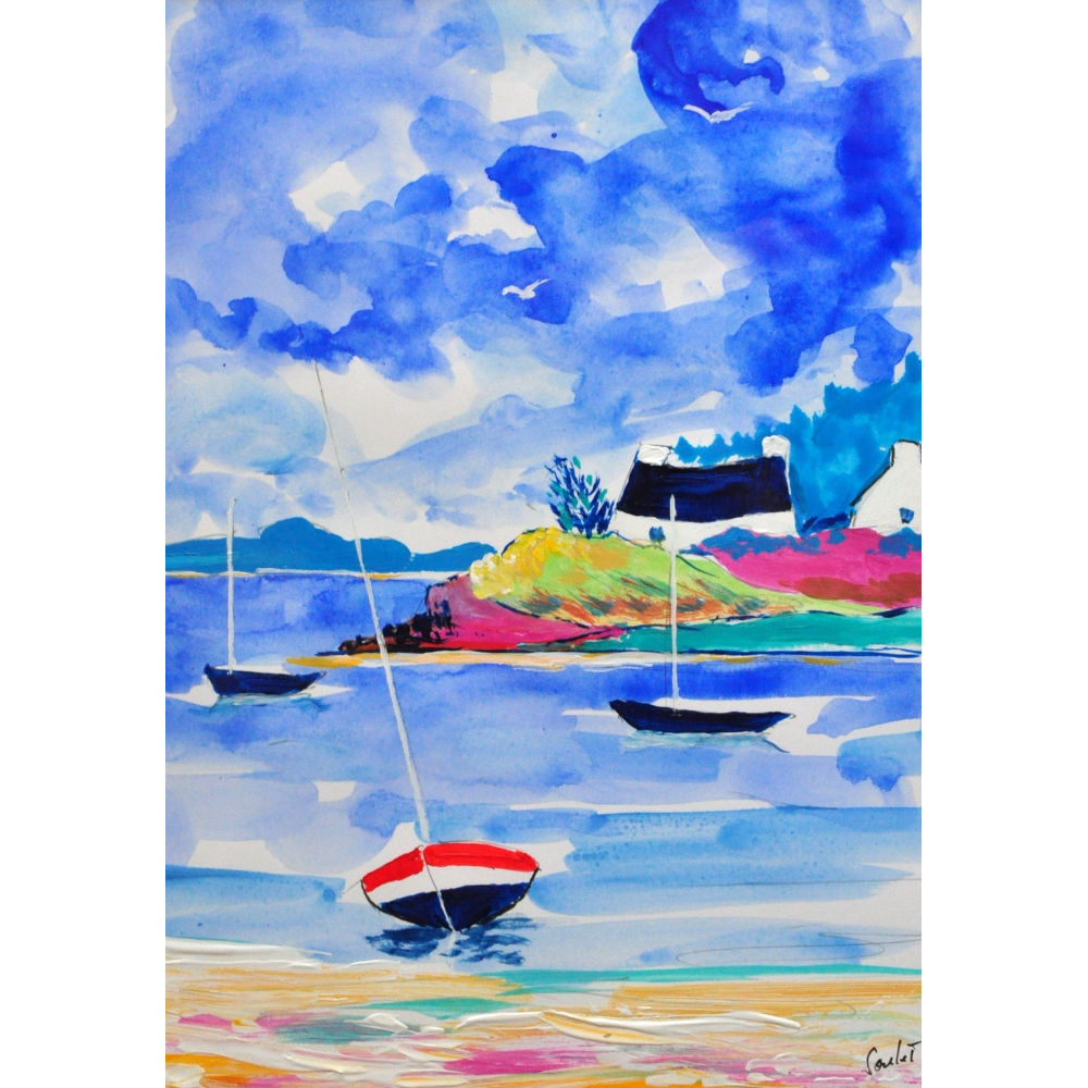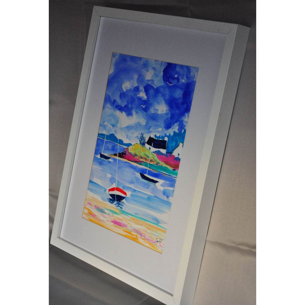 Aquarelle et acrylique sur papier  cadre bois laqué blanc  20 x 30 cm