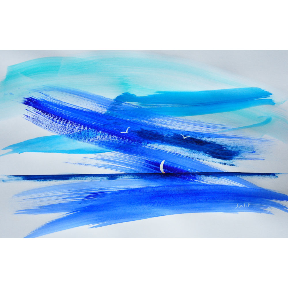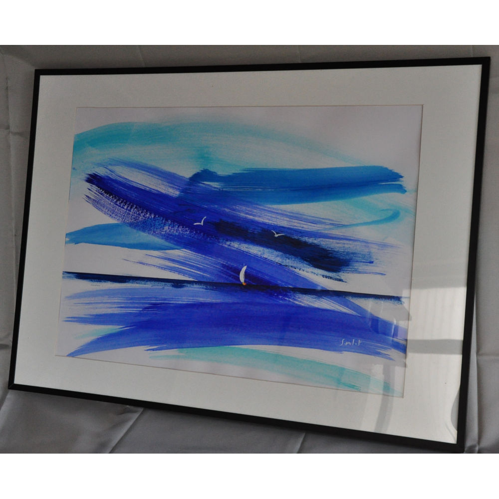 Aquarelle et acrylique sur papier  cadre alu léger noir 54 x 39 cm