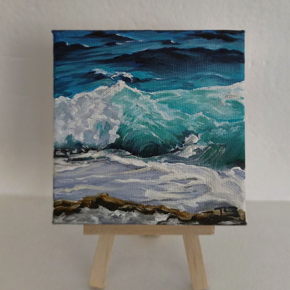 Peinture à l’huile sur toile tendue sur châssis  10 x 10 cm vendu avec chevalet