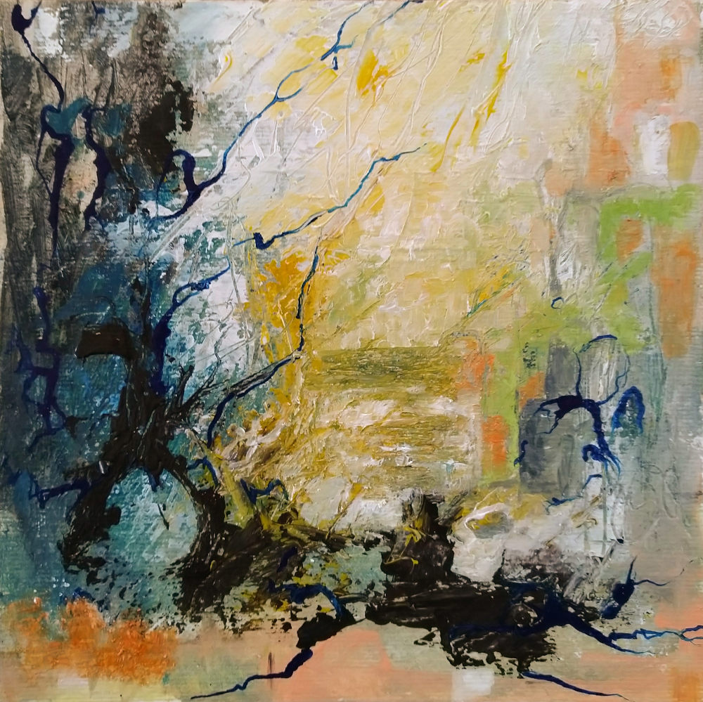 Technique mixte 19 x 19cm encadré 30 x 30 cm