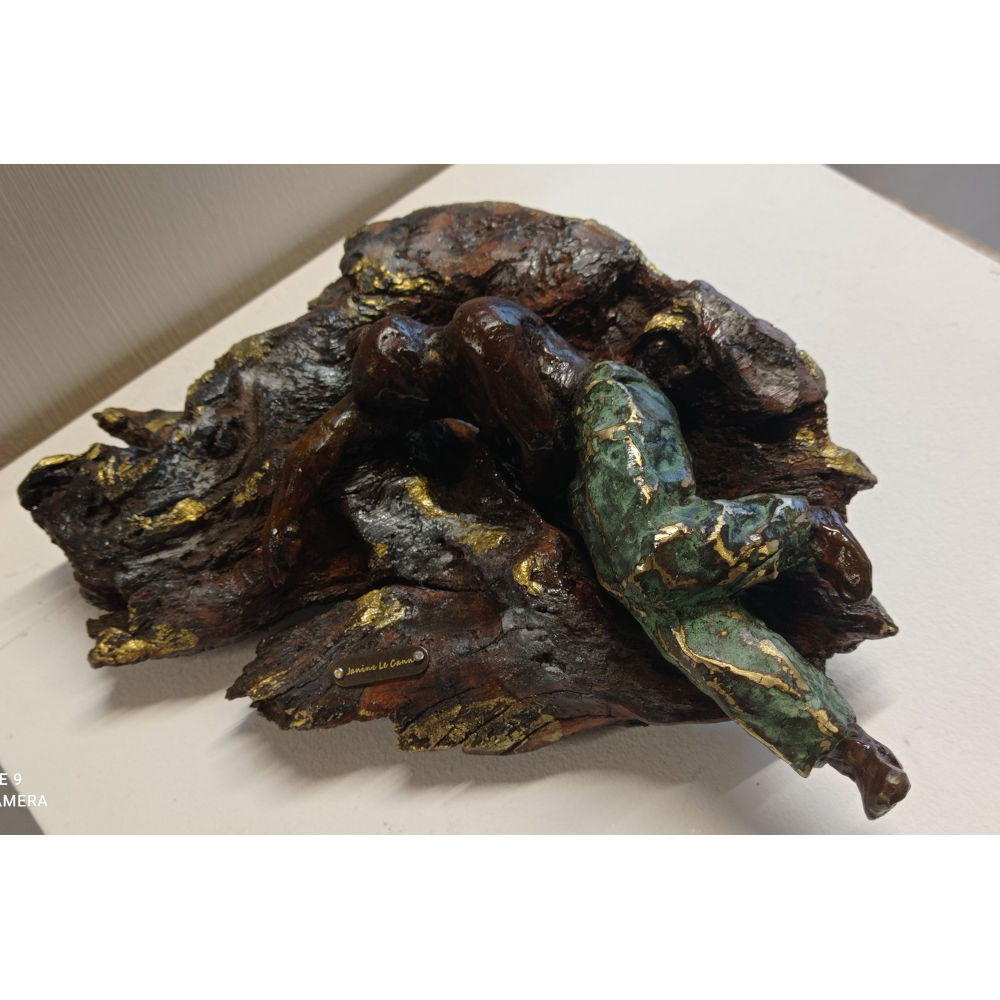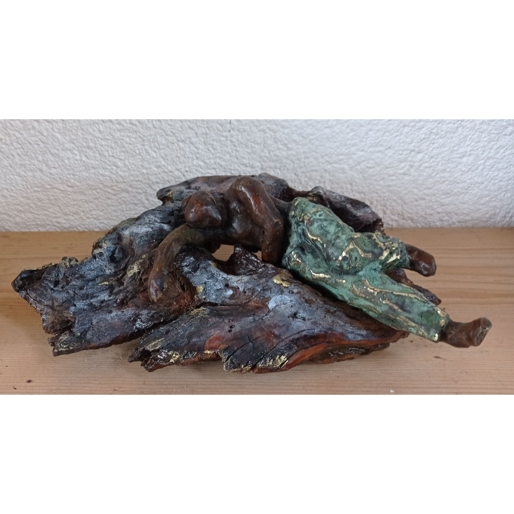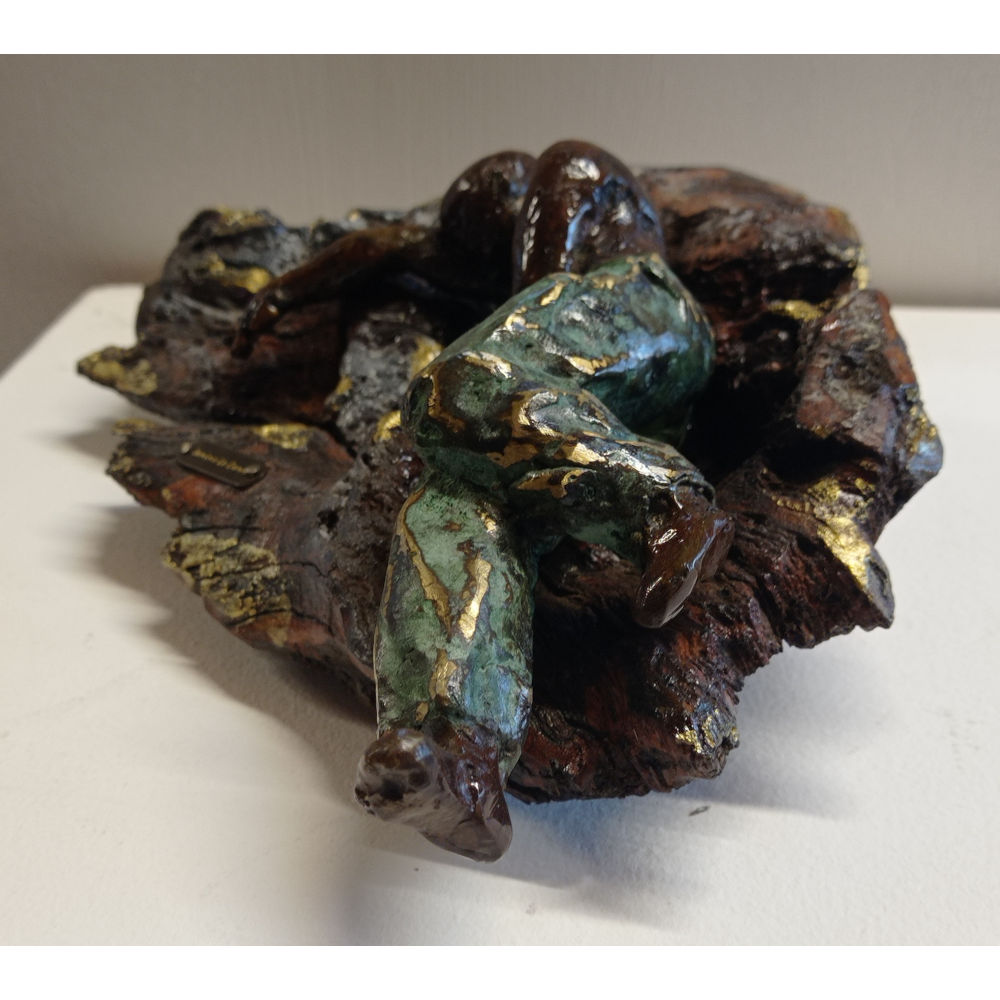 Bronze à la cire perdue réalisé à l’atelier / bois flotté-  Pièce unique 10 x 26 x 17  cm