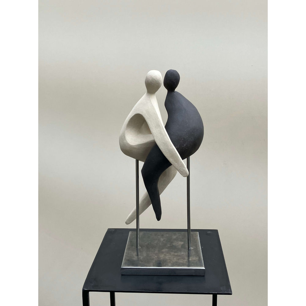 Modelage en grès noir et blanc 36 x 15 x 15 x 4,9  15*15 cm ep 15 mm en acier