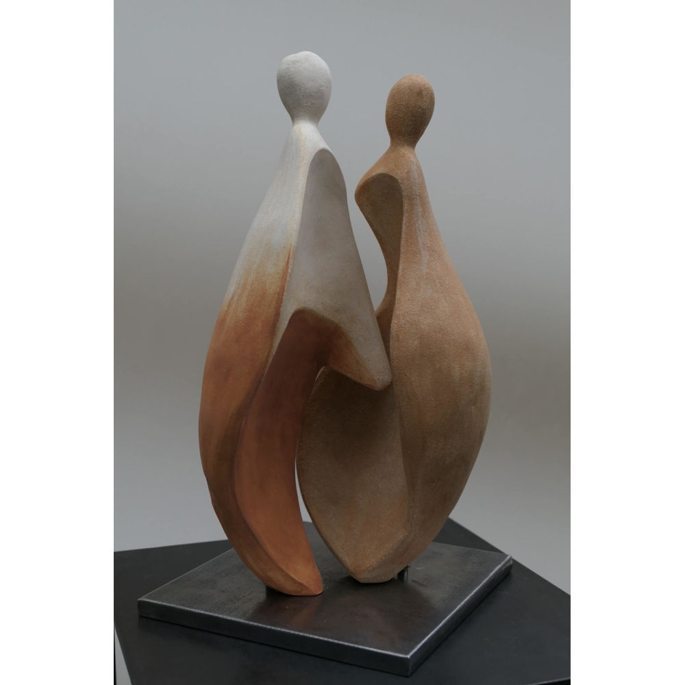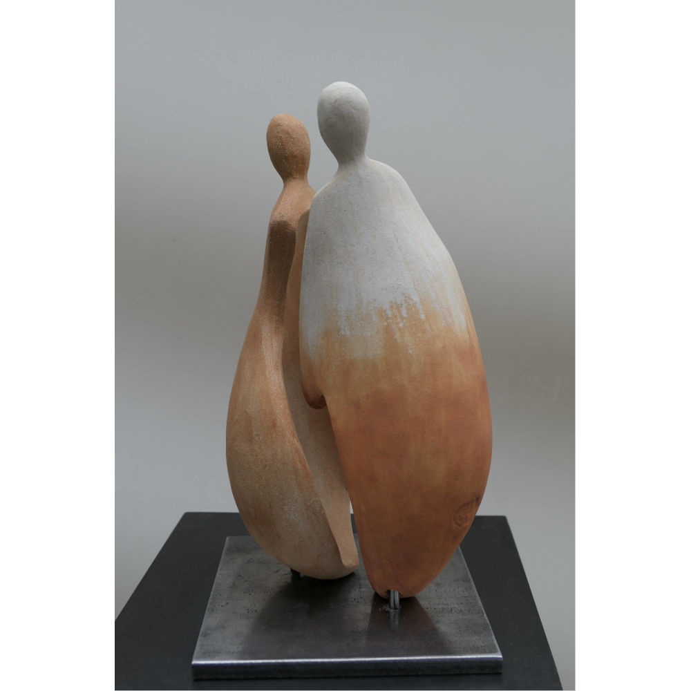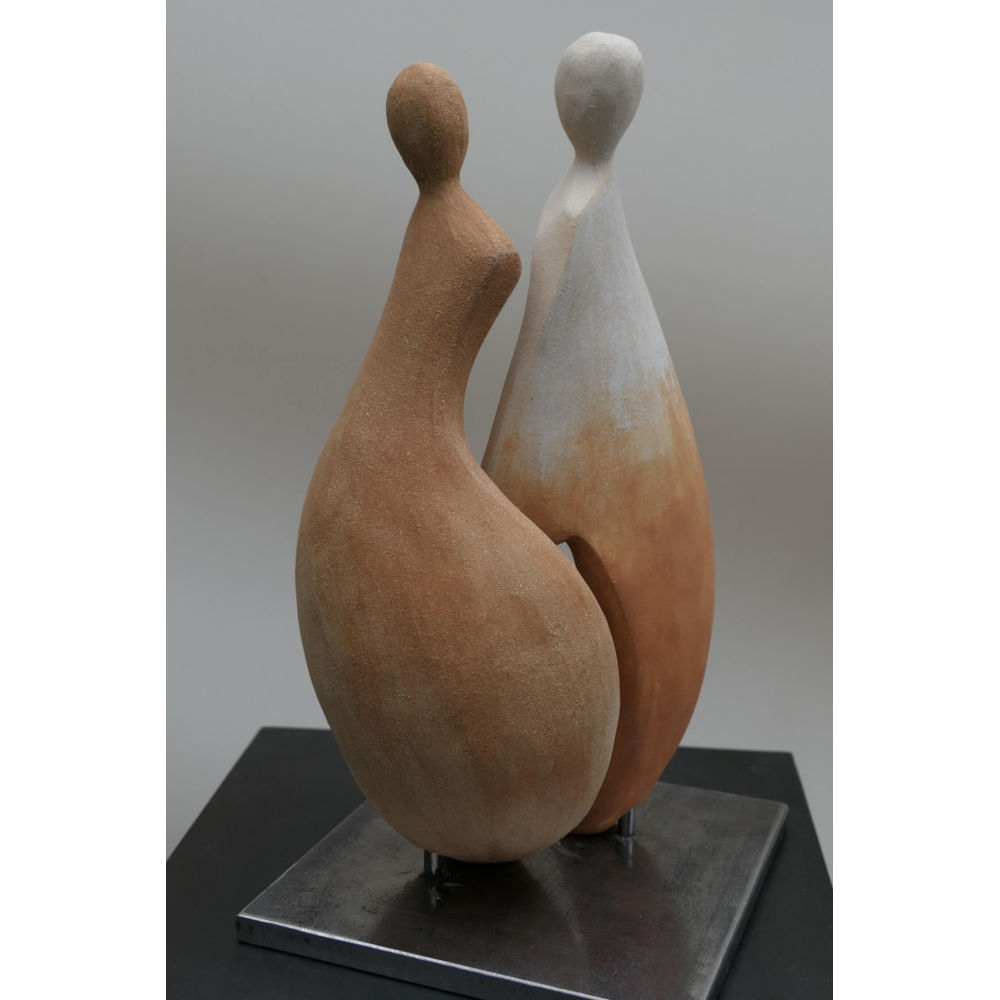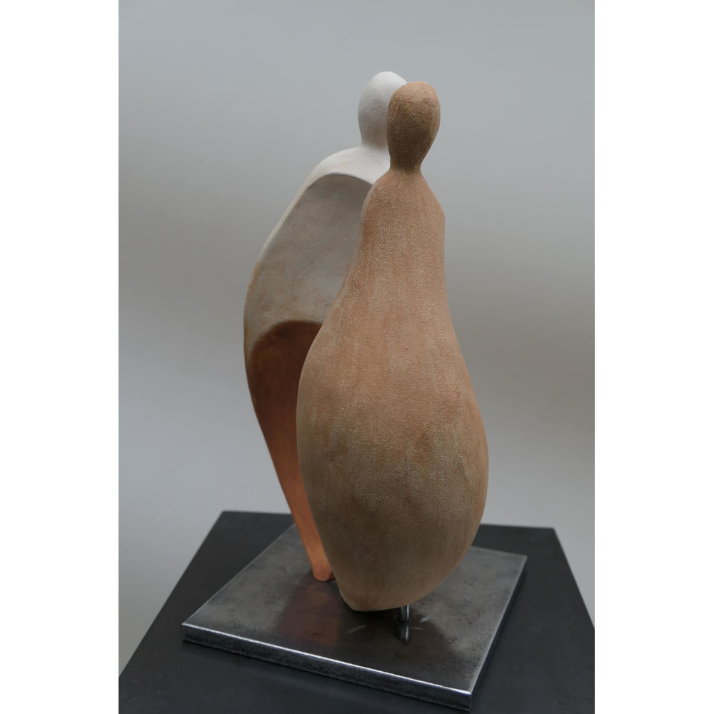 Modelage en grès blanc, jus d’oxyde rutile  30 x 15 x 15 x 4,5  15*15 cm ep 15 mm en acier