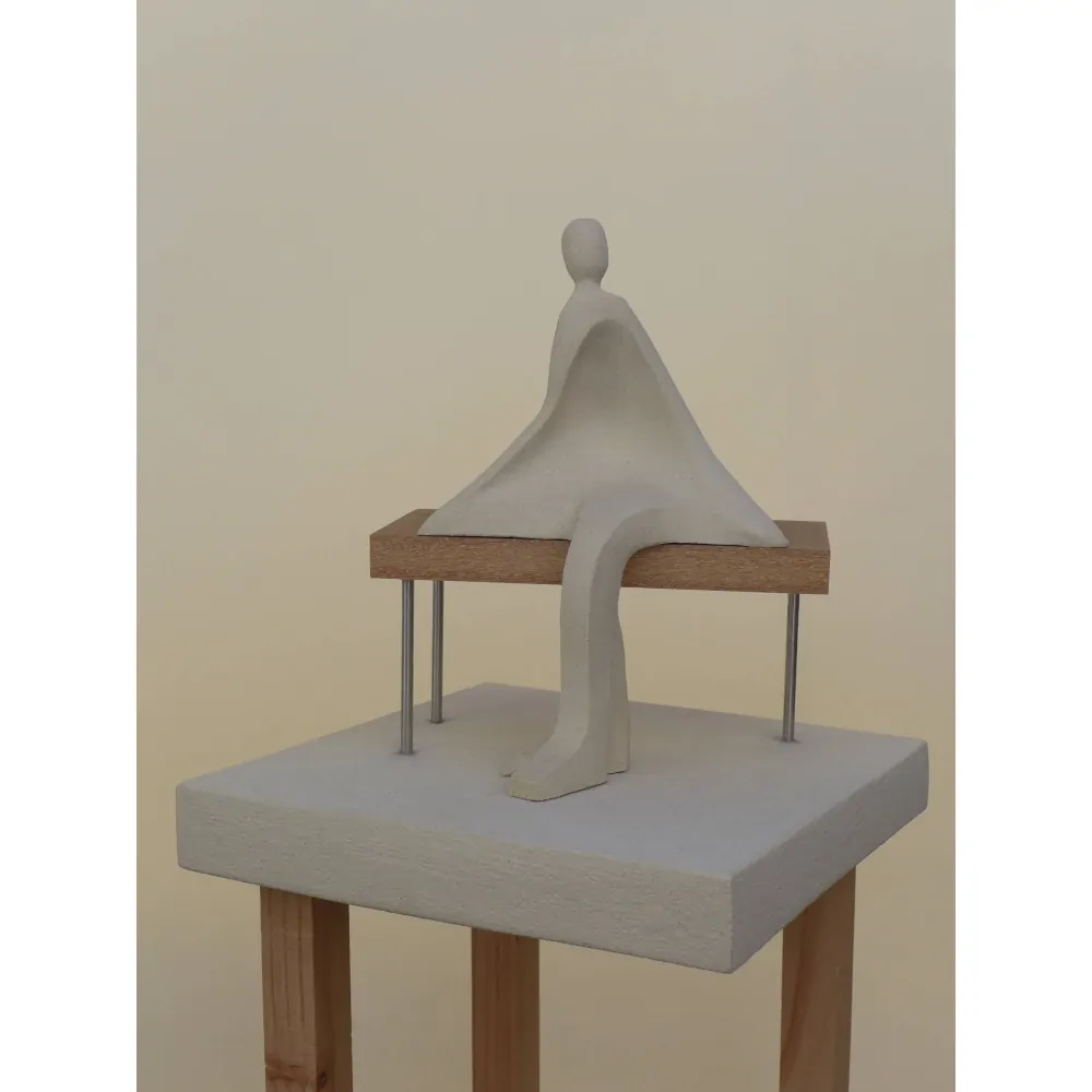 Modelage en grès blanc   29,5 x 27 x 27 x 9,7    30 x 30 cm, 27*27 cm, grès, tige inox, bois exotique